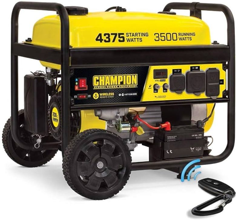 Our 3500-watt generator with remote key fob allows you to start and stop your generator from up to 80 feet away. The 208cc Champion engine with electric start and included battery features Intelligauge and has the power you need for your RV, home outage backup or your next project.